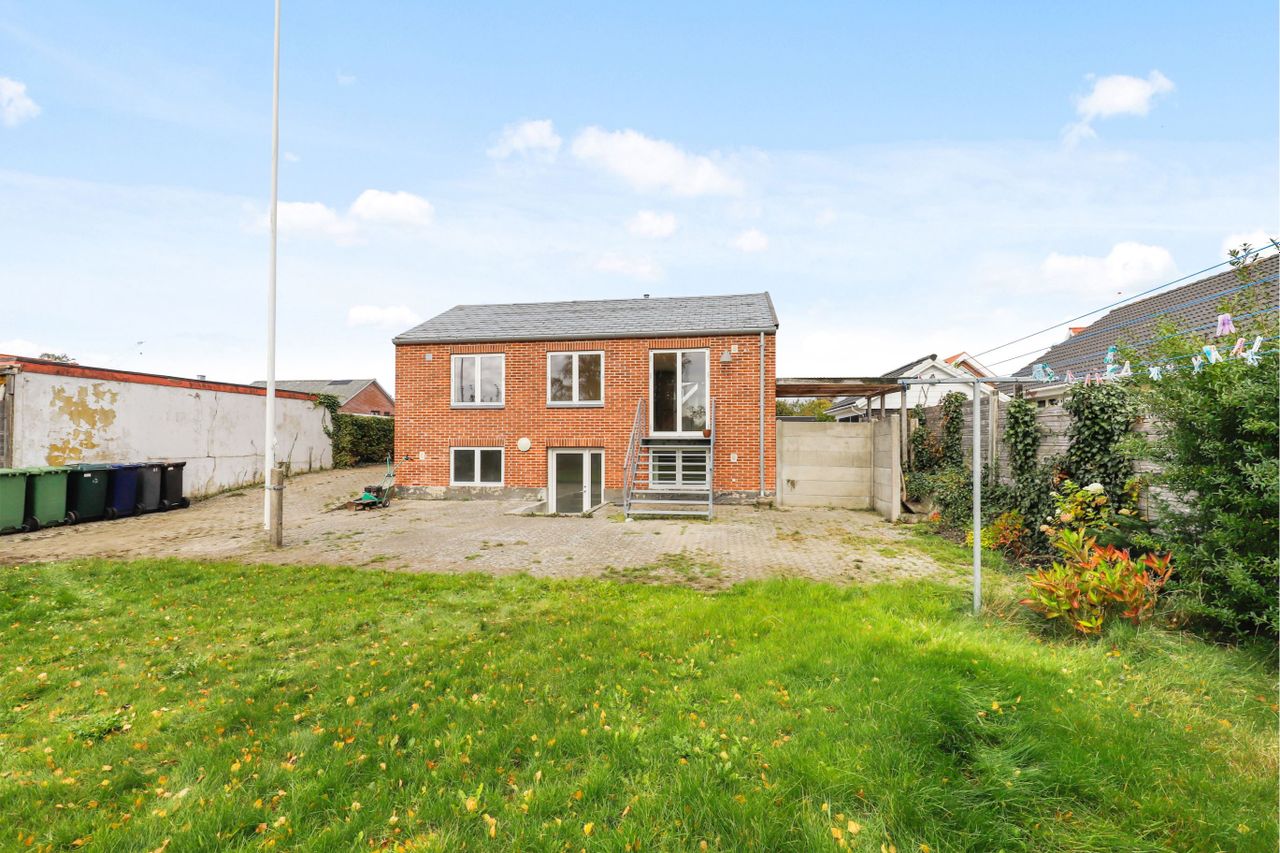 I kælderen forefindes : 2 store lyse dip. rum med varme, højt til loftet samt det ene rum, er med udgang til have samt den store solrige flise terrasse.