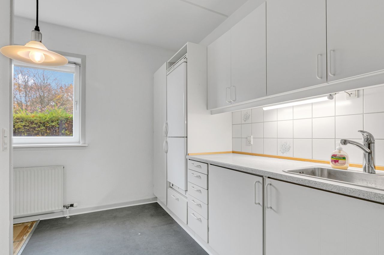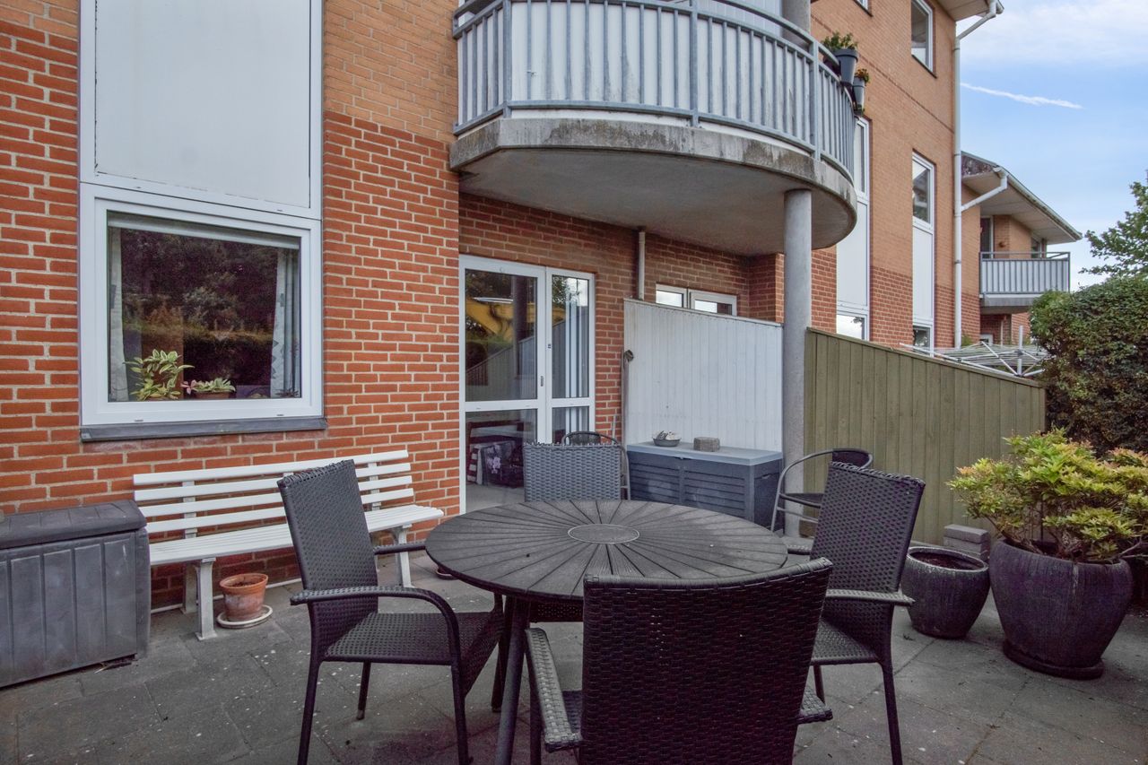 Andelsbolig i stueetage på 76 m2, med skøn atrium flisebelagt have.