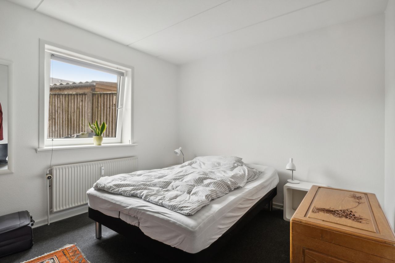 Dejligt lyst soveværelse, med indbyggede skabe.