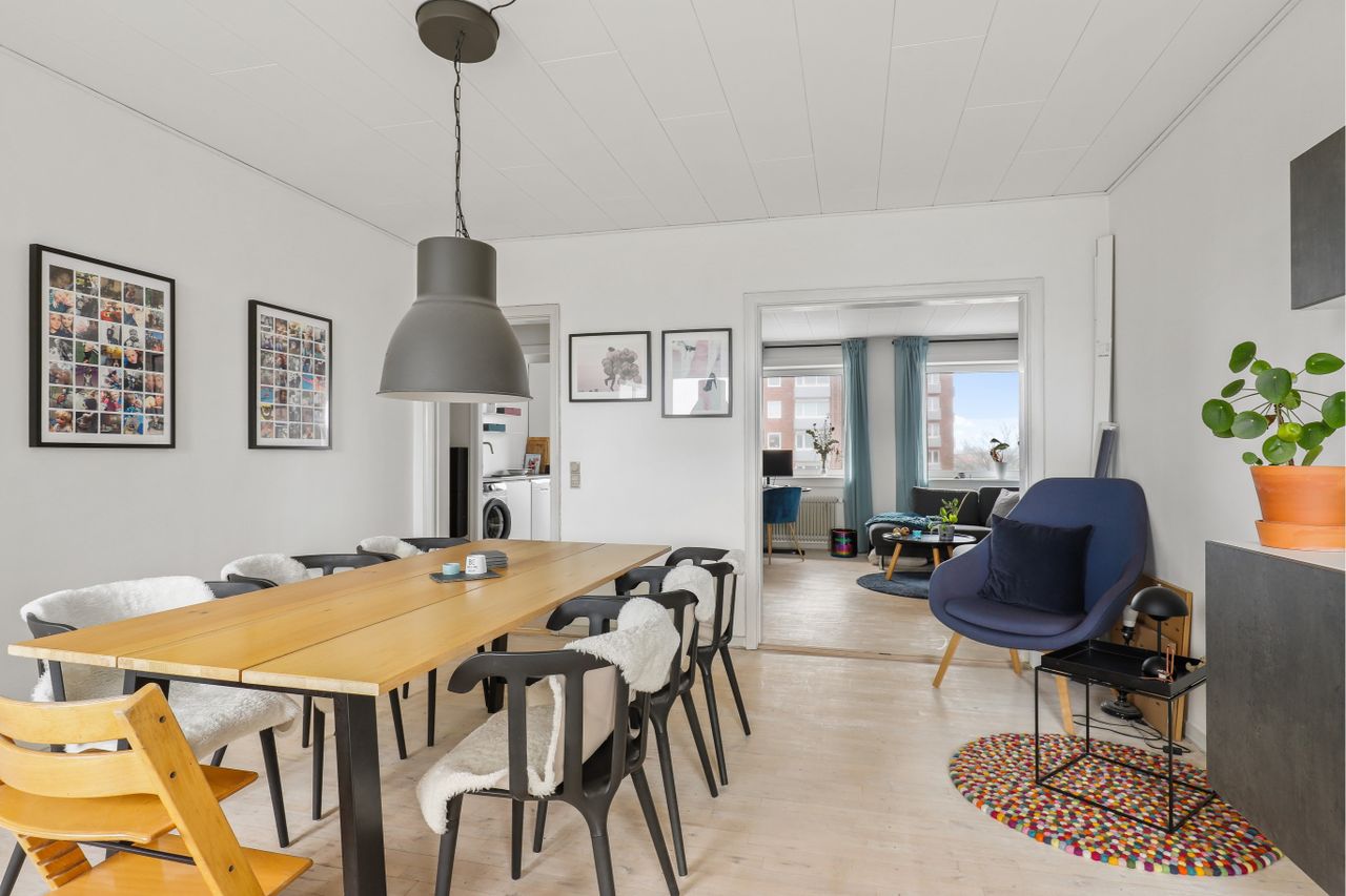 I det eftertragtede Esbjerggaard i Frejaparken, tilbydes denne flot renoverede 94 m2 Andelsbolig, på 2
