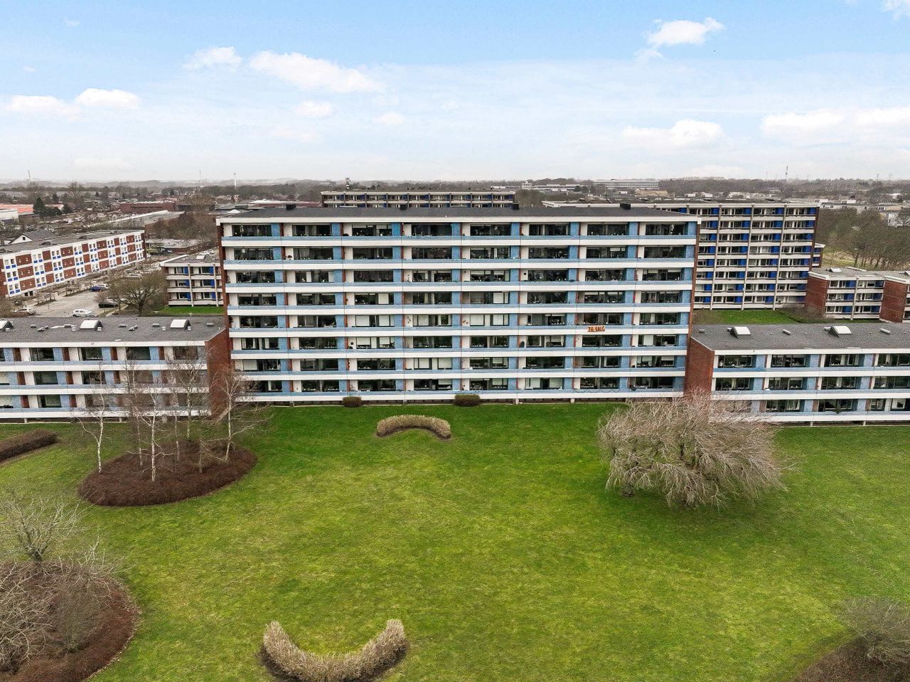 Lejligheden er beliggende i en ejendom , som består af 124 lejligheder og bygningerne fremstår i god