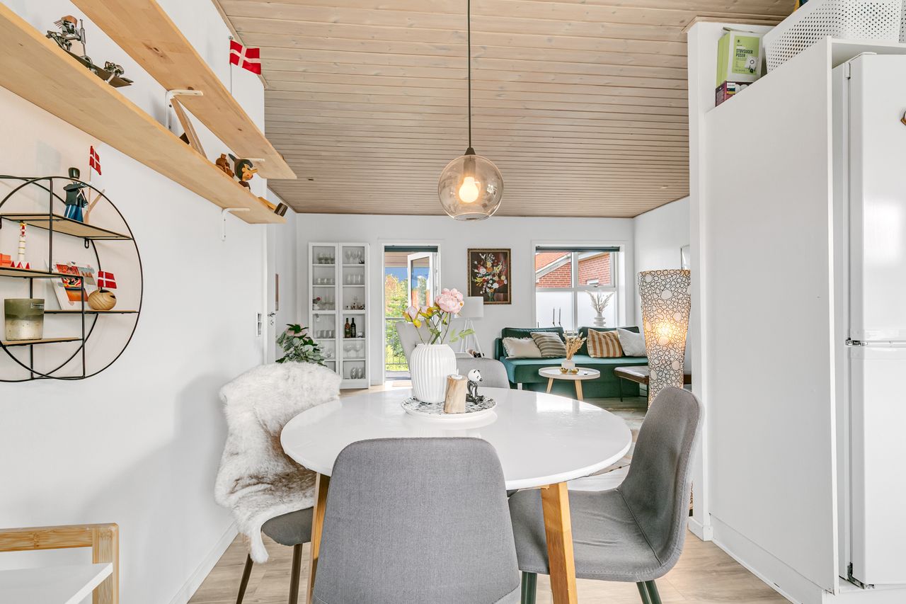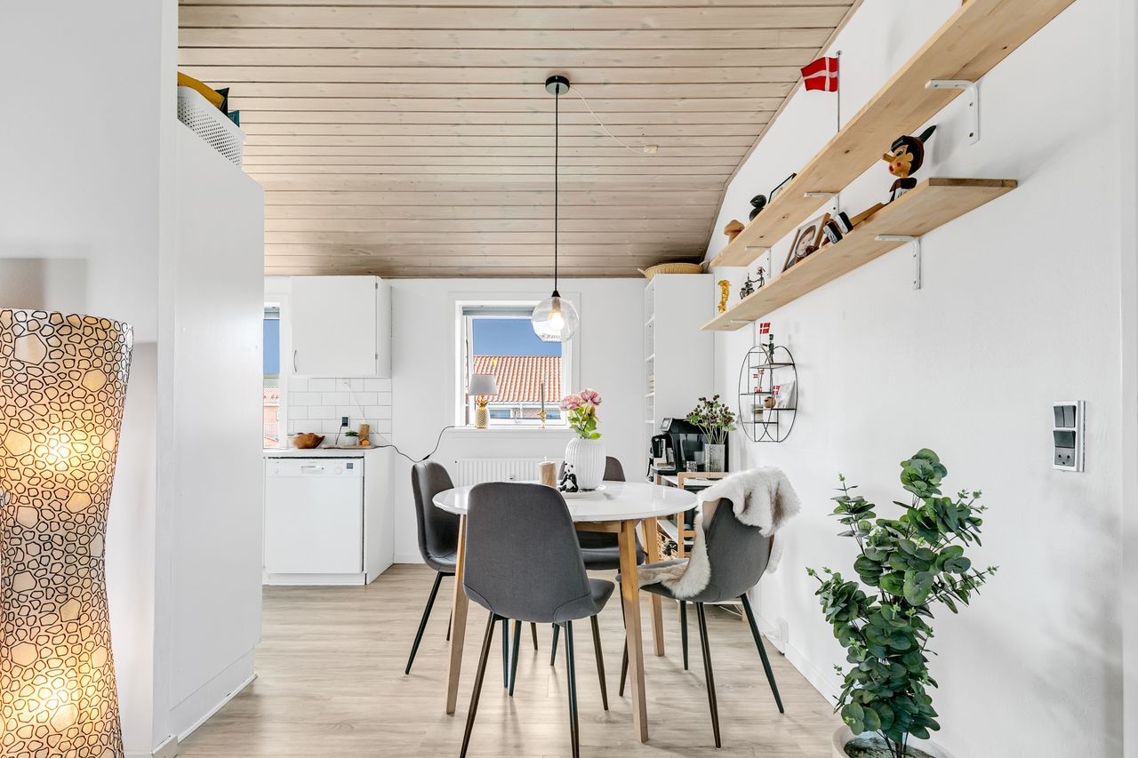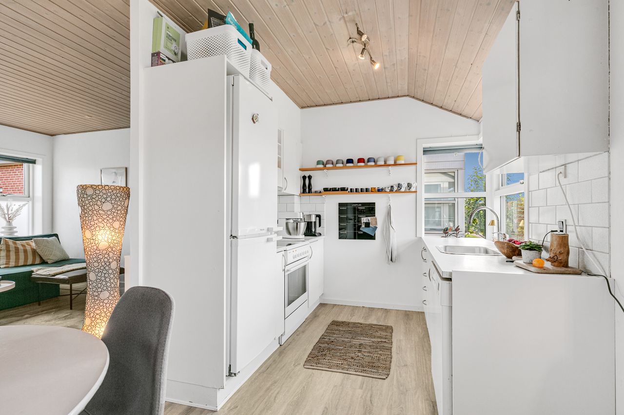 Hele boligen har flot opsatte rustiklofter samt nydeligt lyst laminatgulv pålagt og endvidere der der pæne hvide indvendige døre isat.