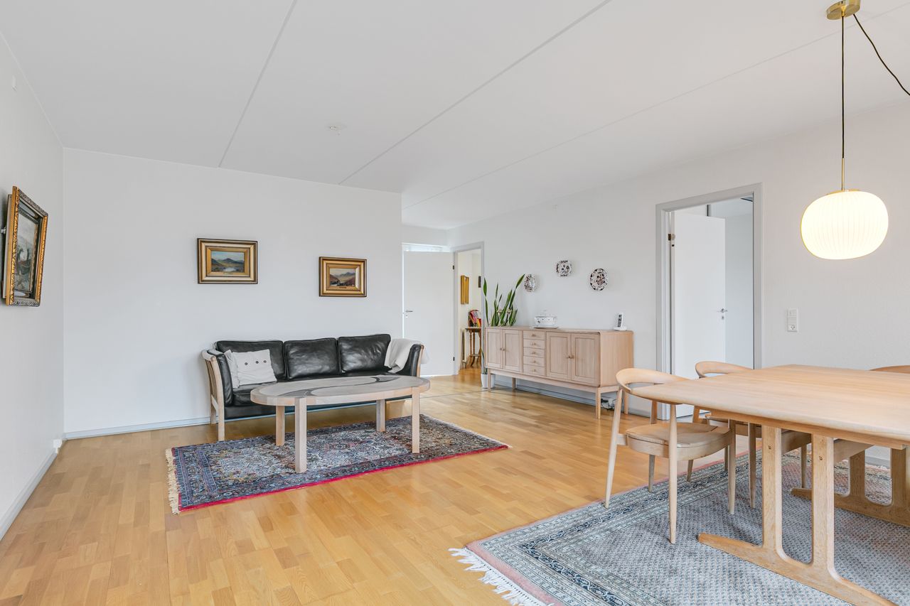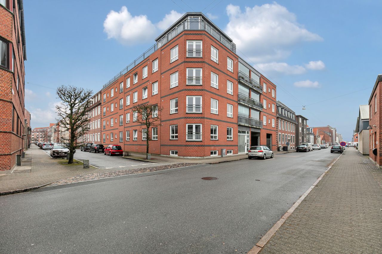 I den indre by, tilbydes denne velindrettede Andelsbolig i velholdt ejendom på 94 m2 med tilhørende stor altan. Lejligheden er beliggende på 2 sal og der er elevator i ejendommen, direkte fra gården eller hovedindgangen.