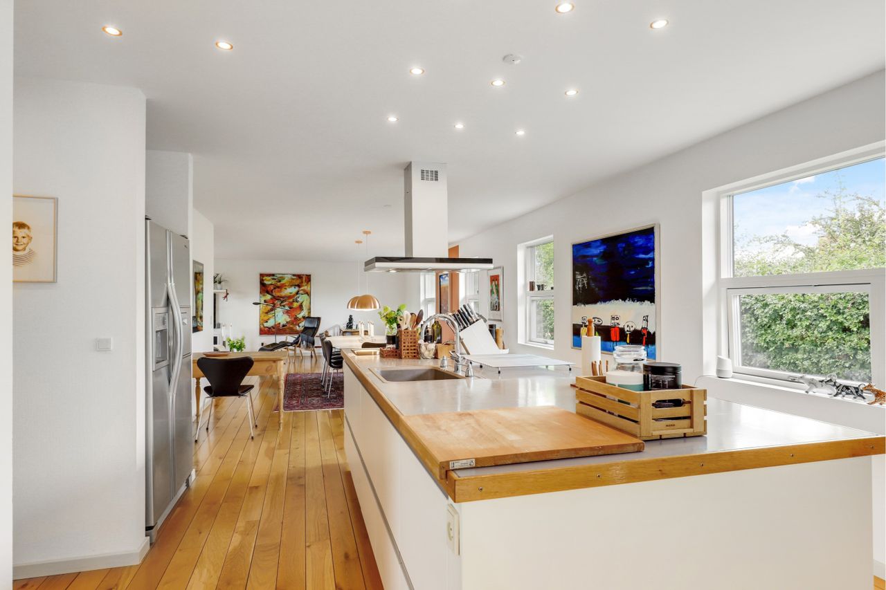 fra køkkenet er der direkte adgang til den skønne lyse opholdsstue, med særdeles gode møblerings