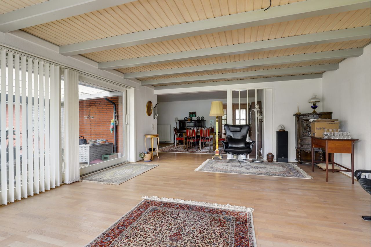 Stor lys møblerings venlig opholdsstue, med skydedørs parti til haven, stuen er i åben forbindelse, til hyggelig spisestue med brændeovn.
