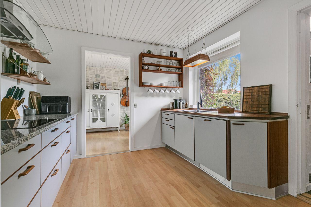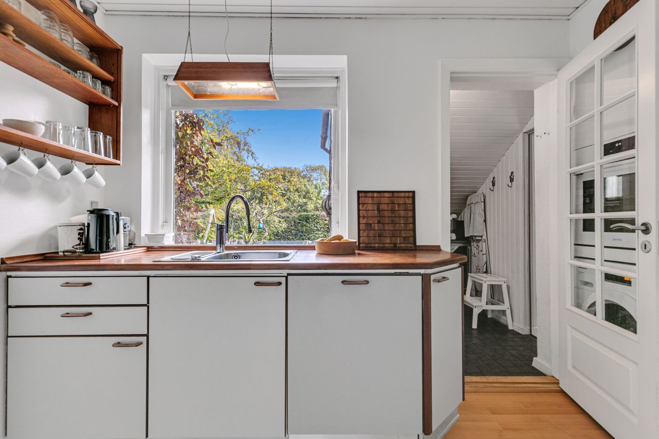 Hvid sprossedør til baggang og der findes endvidere et skønt disp. rum, som er indrettet til værelse, med flot vinduesparti og skråvæg.