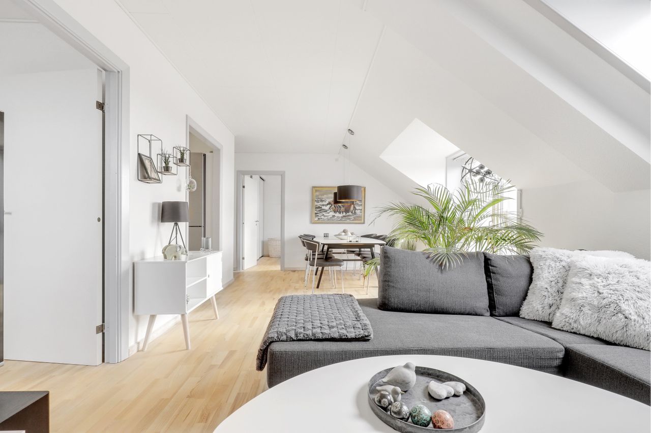 ovenlysvinduer i loft som går ned til gulv, hvor det giver et særdeles flot lysindfald.