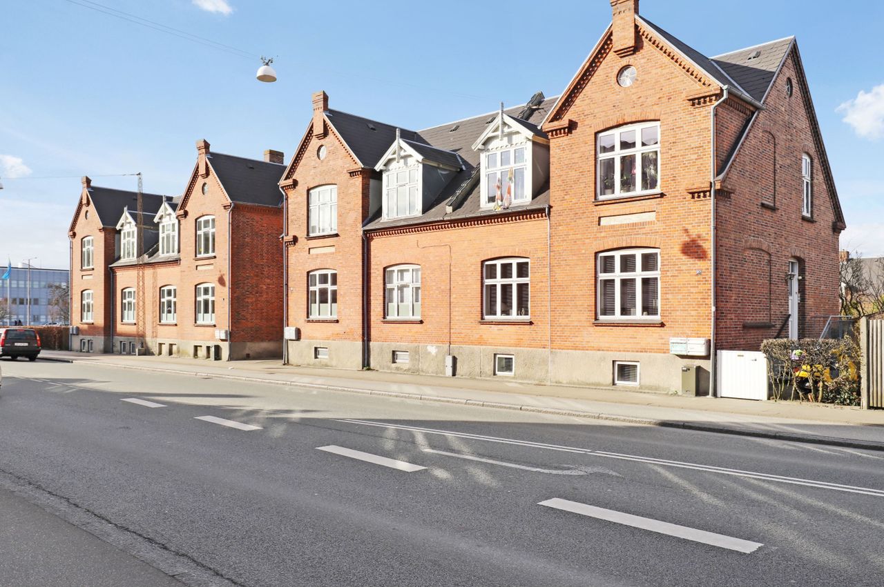 I den indre by, tilbydes denne arkitektonisk flotte 2 plans villa på ca. 147 m2 + 78 m2 kælder .