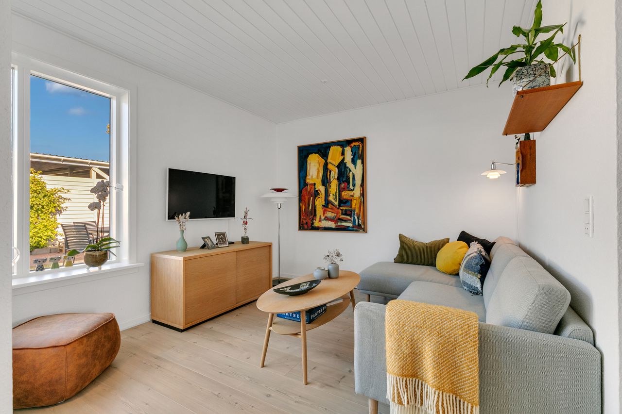 Særdeles flot Andelsbolig i Sædding på 90 m2 i 2 plan, egen carport samt redskabsrum, skøn solrig atrium have.