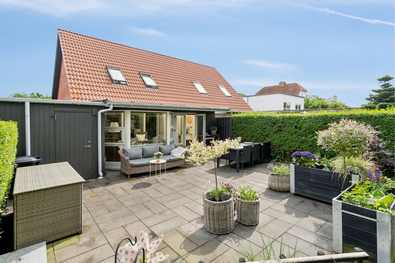 tilhørende carport og skøn mindre solrig vel anlagt have.