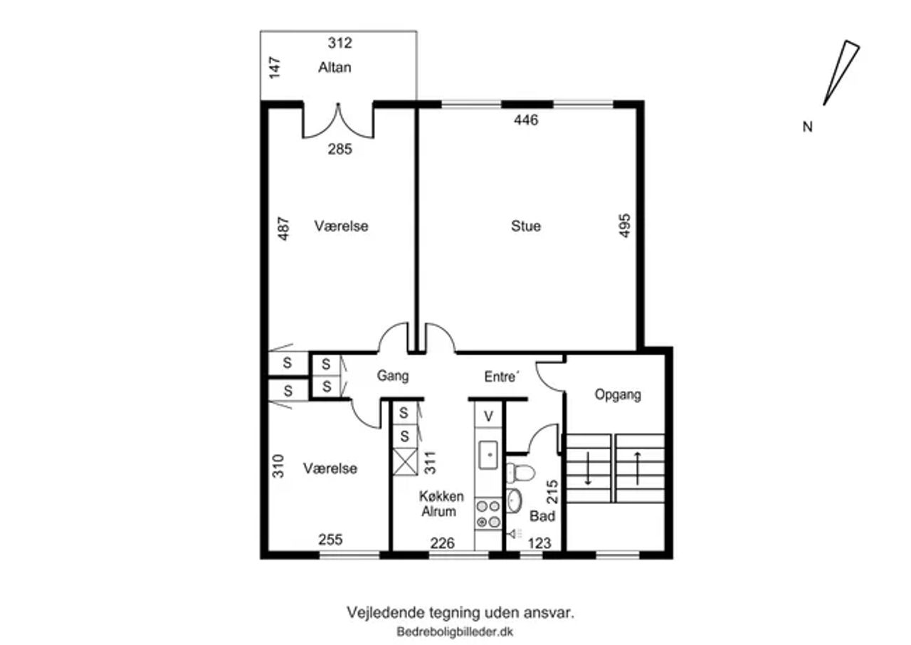 Velindrettet Andelsbolig på 82 m2 på 2 sal, med fransk altan og mulighed for etablering af altan.