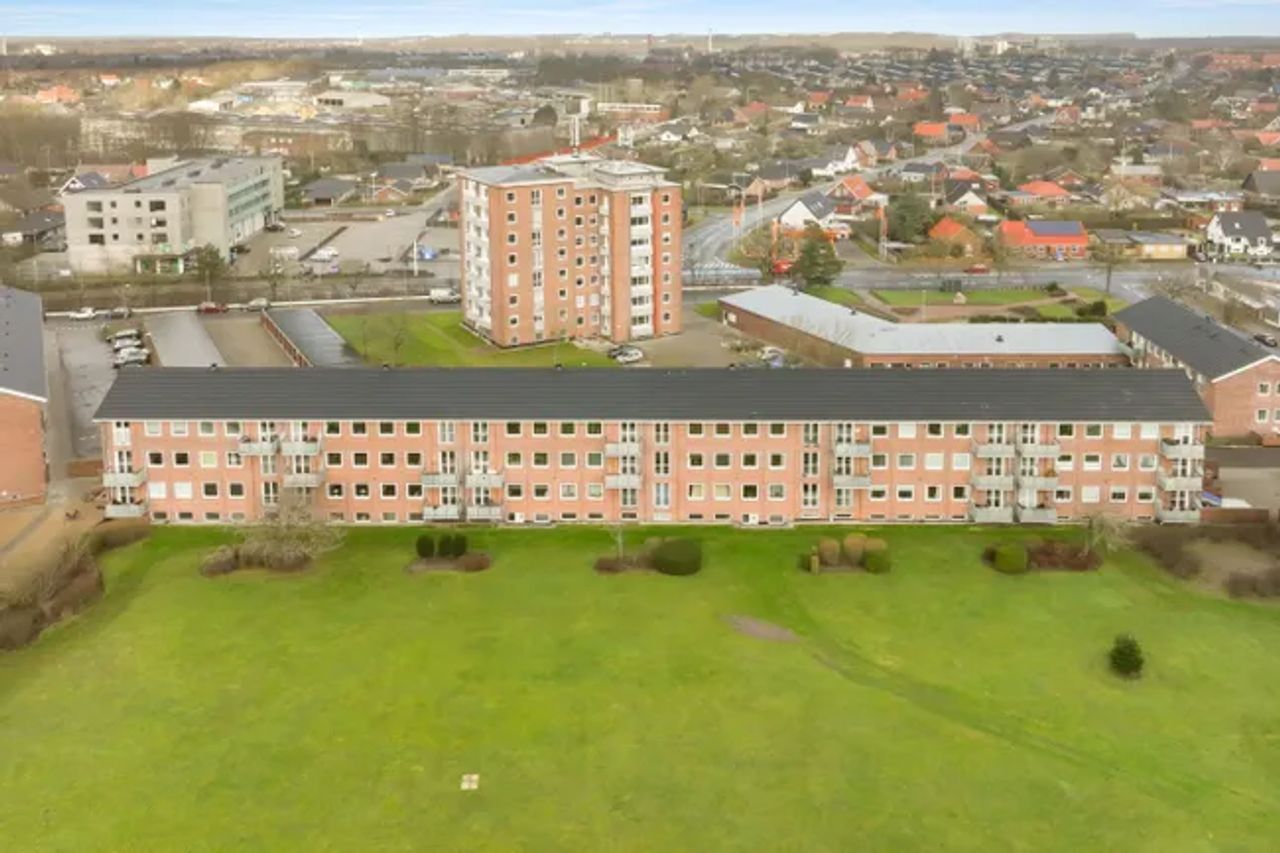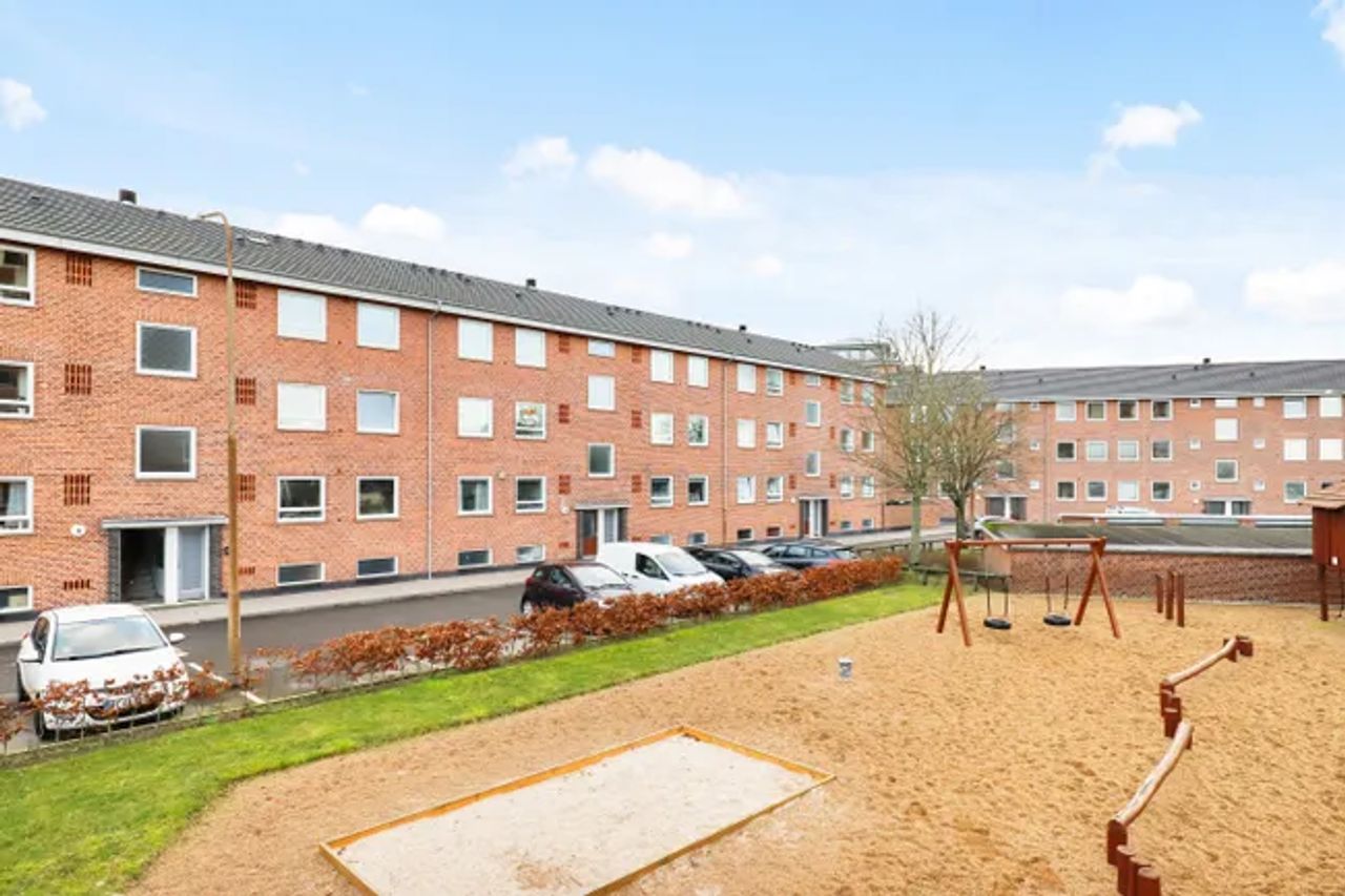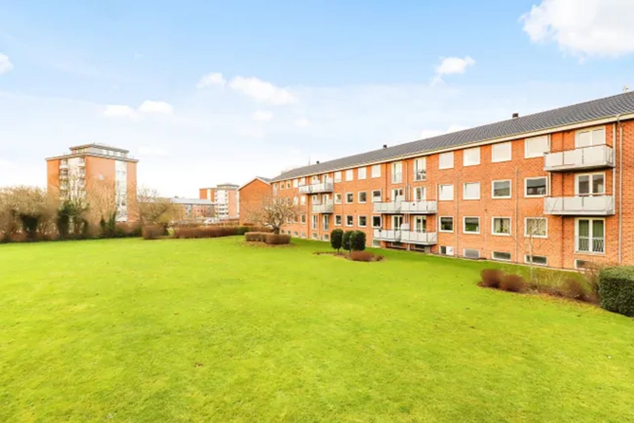 Lejligheden er beliggende i rød murstens ejendom med 6 boliger i hver opgang og denne bolig er beliggende på 2 sal, med en særdeles god udsigt til grønt område.