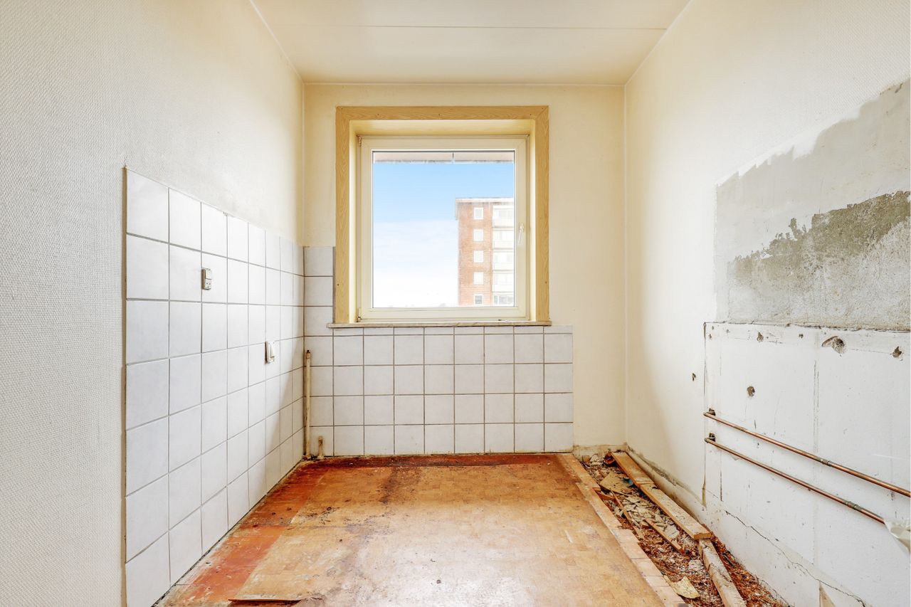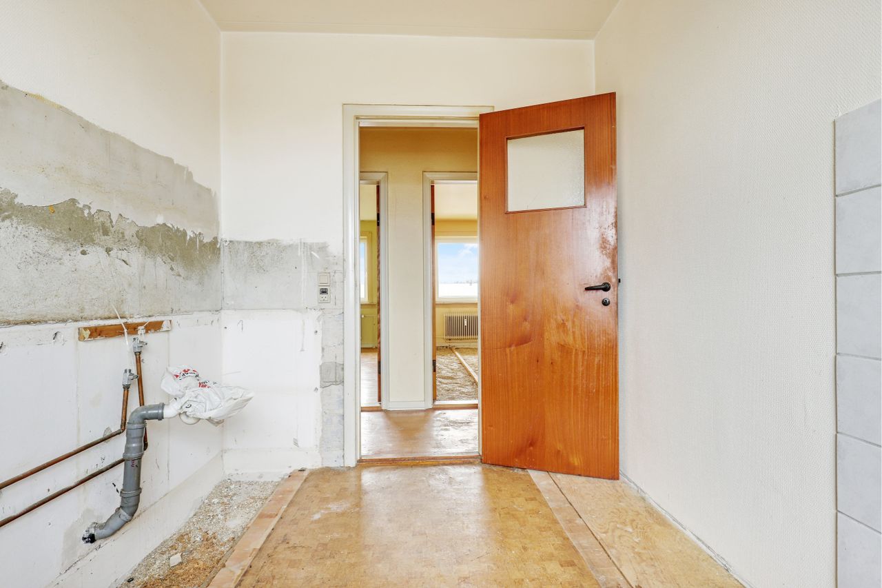 Pænt lyst køkken, hvor der er gjort klar til opsætning af nyt køkken.
