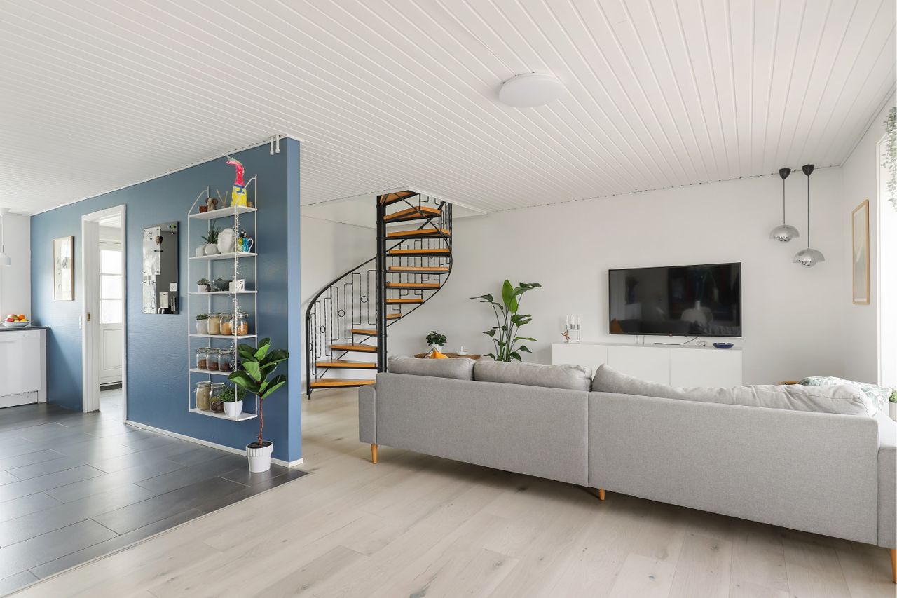 Fra stuen er der adgang til 1 sal, fra nydelig spindeltrappe.