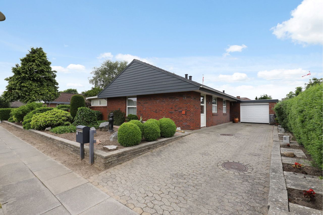 Velholdt 1 plans villa 124 m2 + muret garage samt flot udestue.