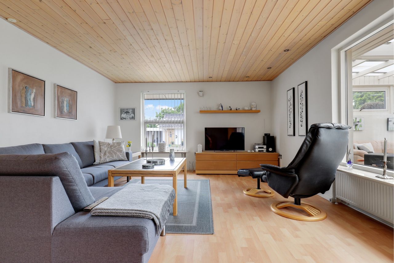 opholdsstue med pænt laminatgulv.